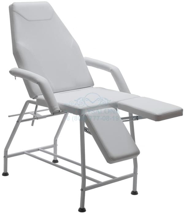 Кресло педикюрное ПК-01 производства российской компании с мягким элементом, выполненным из высококачественного поролона, обтянутого искусственной кожей. Металлический каркас белого цвета. Ножки оснащены механической регулировкой по высоте, спинка раскладывается в горизонтальное положение. Кресло также оснащено съемными подлокотниками. Размеры (ДхШхВ):160х58х70