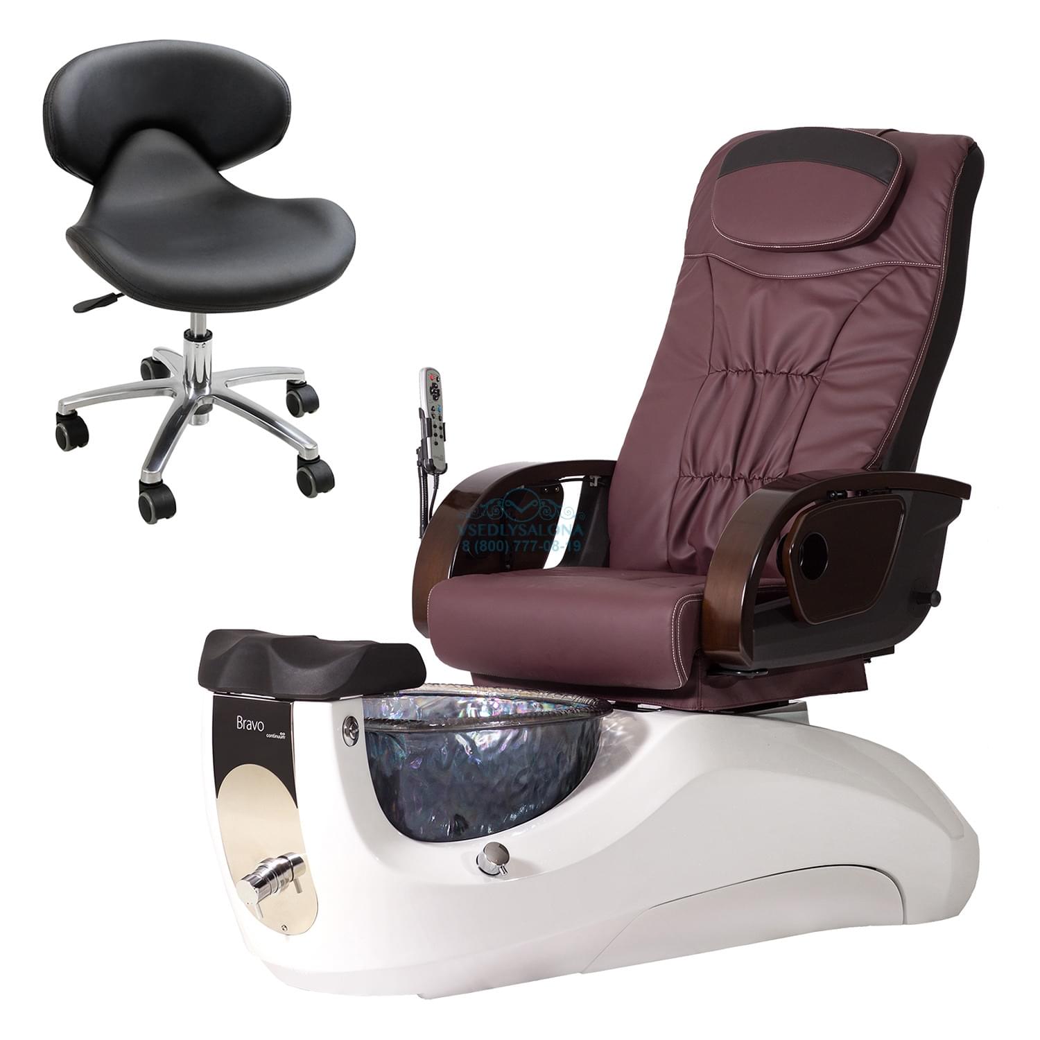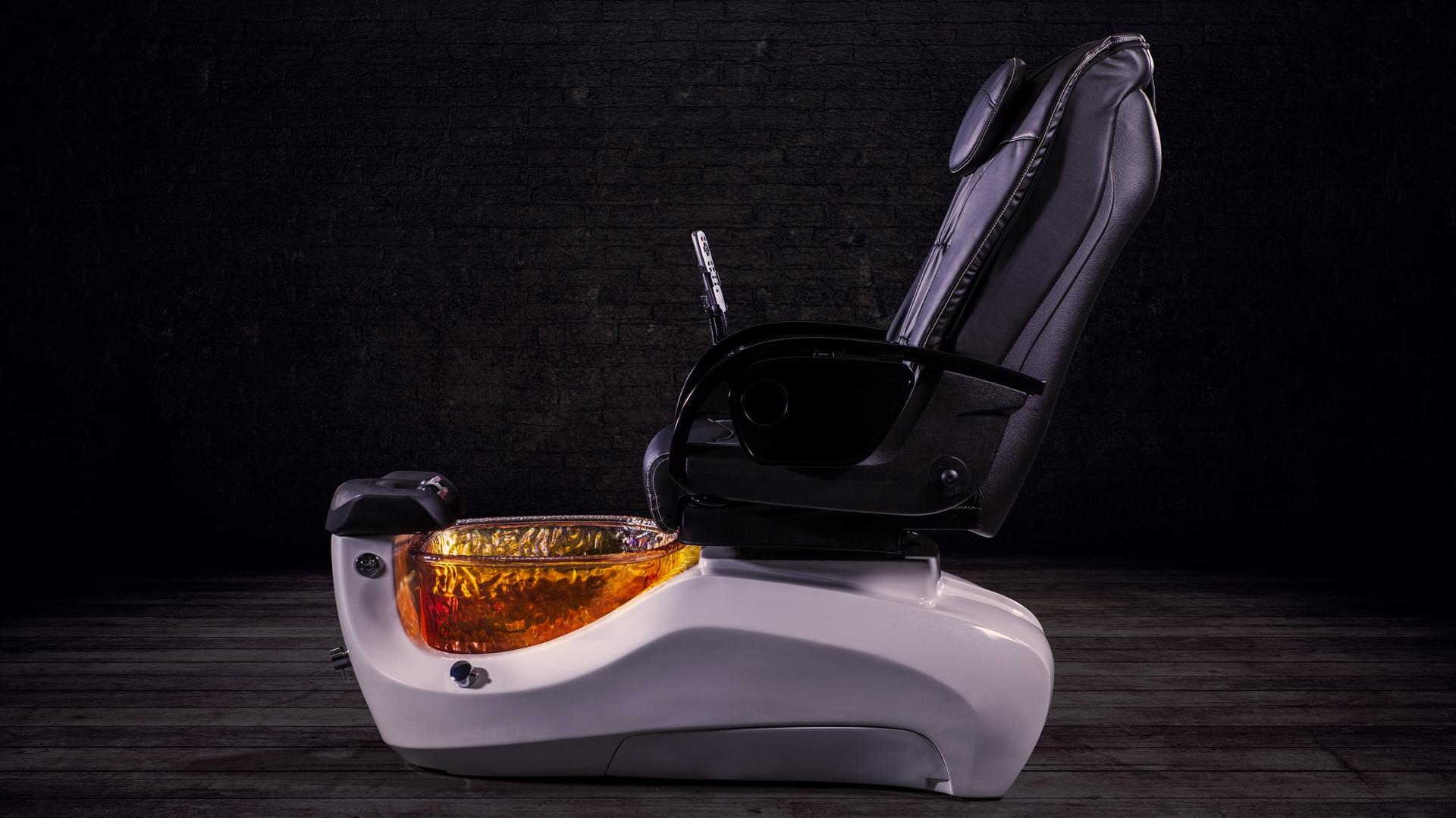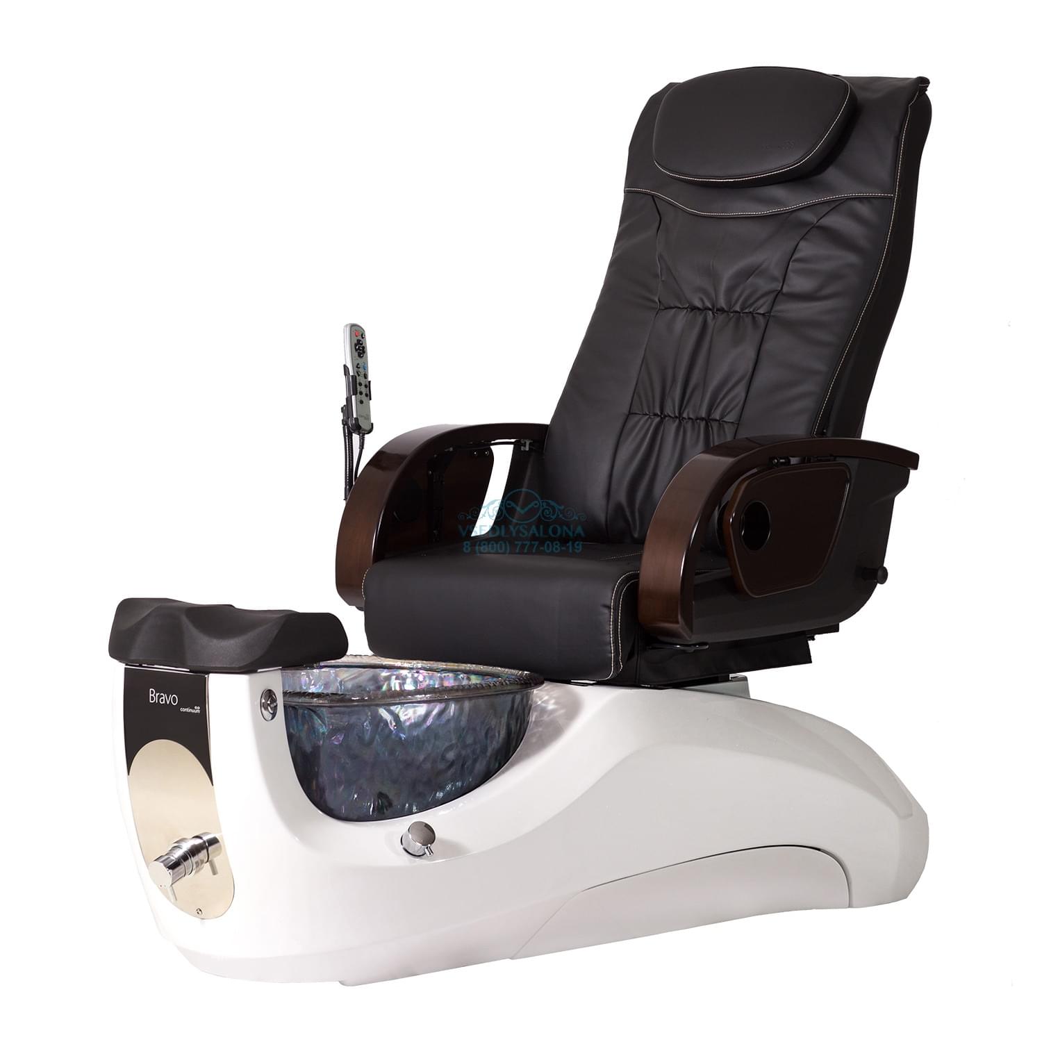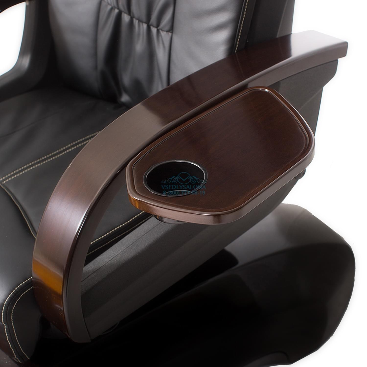 Многофункциональное и большое по размерам педикюрное СПА кресло имеет в себе не только педикюрные, но и массажные функции. Во время процедуры клиент может расслабиться и отдохнуть, выбрав подходящий для себя режим вибраций. Основание кресла сделано из прочного и крепкого пластика, благодаря чему кресло устойчиво стоит на поверхности. Обтянуто кресло прочной эко кожей темного цвета в коричневых оттенках. Ванночка для процедур выполнена из красивого и прочного стекла, цвет которой можно выбрать при заказе самого кресла. Чаша наполняется водой автоматически и не требует съема.