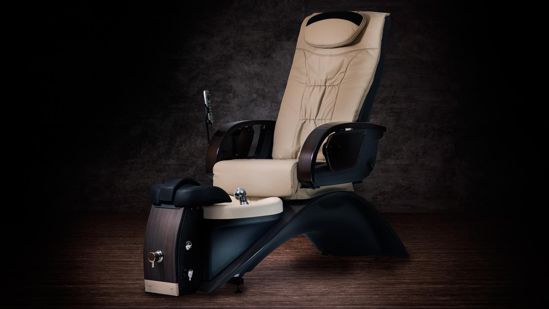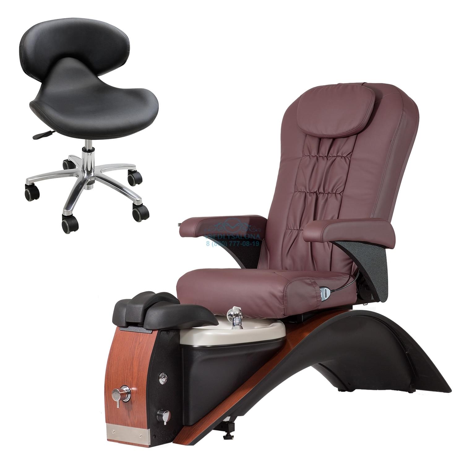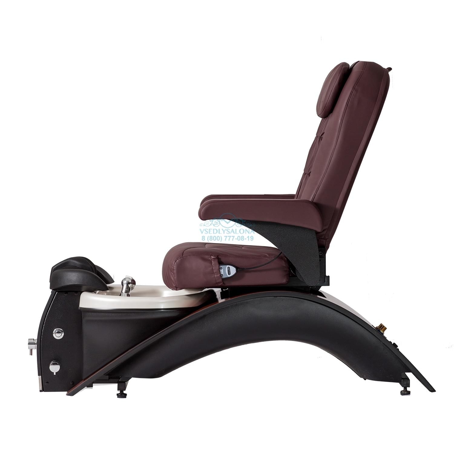 Небольшое по размерам, но в то же время изысканное СПА кресло для педикюра станет прекрасным дополнением в вашем салоне. Кресло имеет подставку для съемных педикюрной и маникюрной ванночек, а также для напитков при желании клиента. Дополнительными функциями служат гидромассаж и вибромассаж ног, автоматическая система водоотвода и мягкий подголовник. В стандарте кресло имеет обтяжку из коричневой это кожи и коричневых деревянных вставок из натурального дерева. При желании можно выбрать любой другой цвет обтяжки данного кресла, подходящей под интерьер и стиль вашего салона.