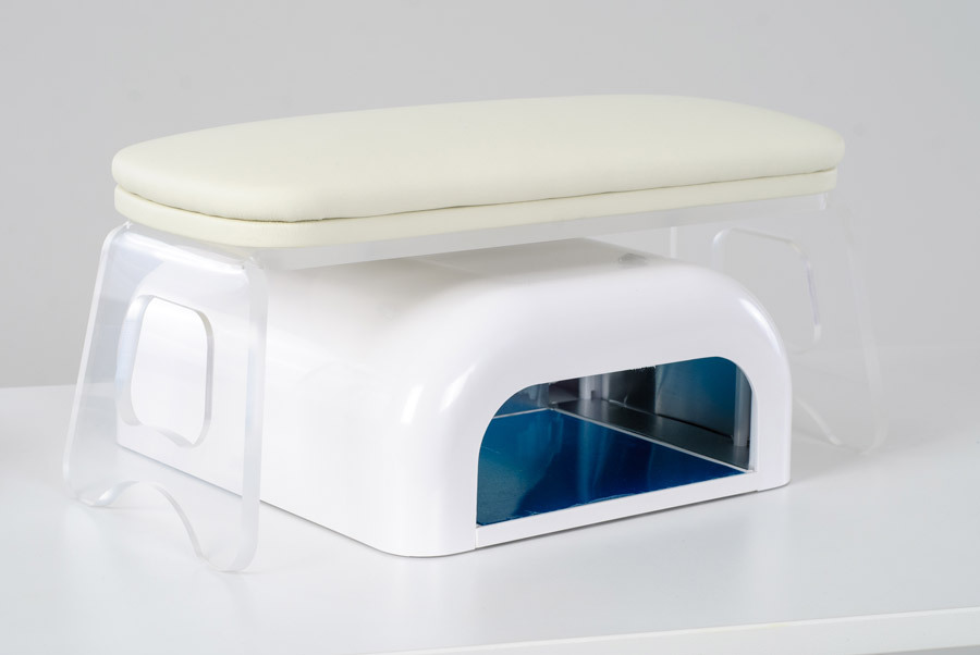 Еще одним преимуществом маникюрной подушки на подставке является то, что под ней можно разместить УФ-лампу для сушки или маникюрный пылесос, что значительно сэкономит пространство на столе.