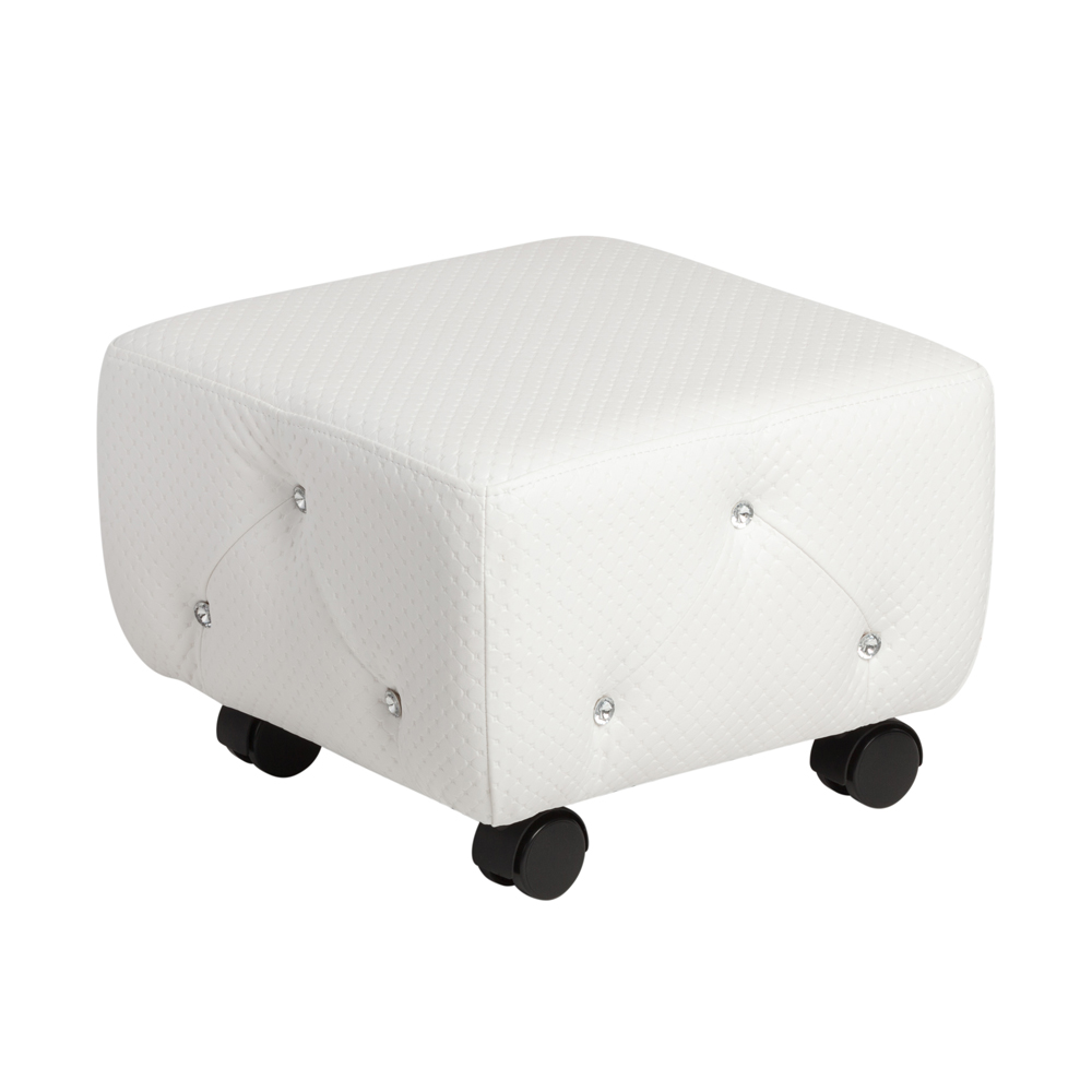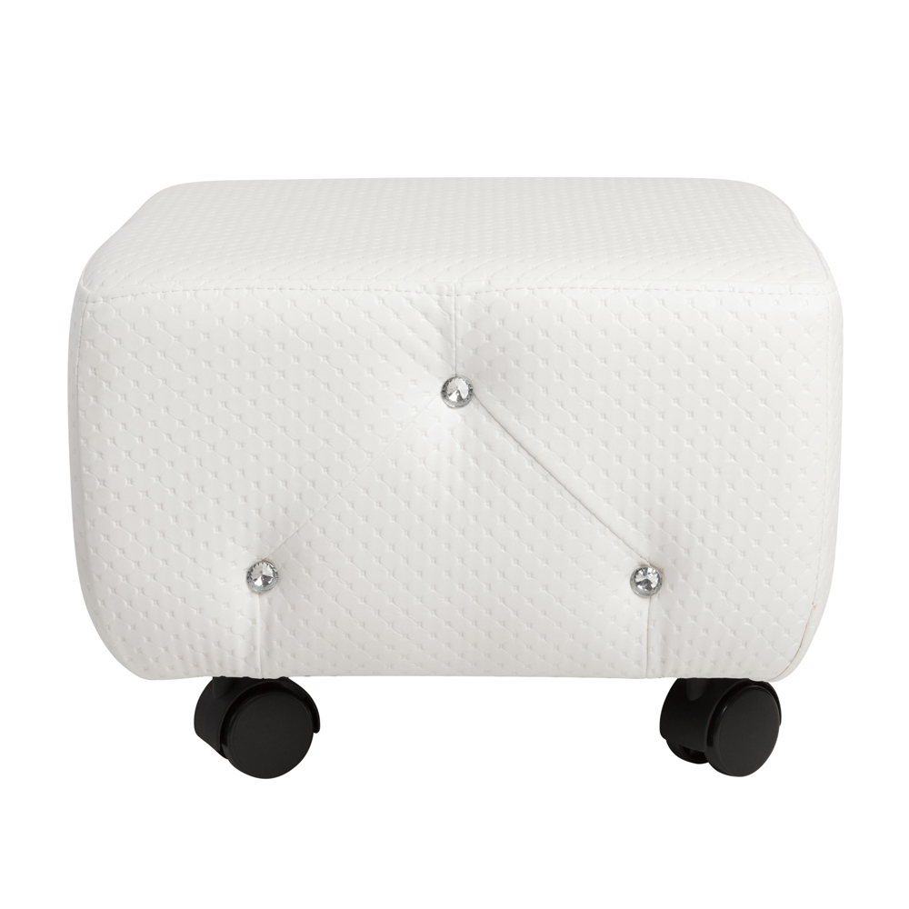 Удобный пуф для мастера педикюра на колесах (нагрузка на 1 колесо до 50 кг), с декоративными пуговицами-стразами, которые украшают внешнюю часть.