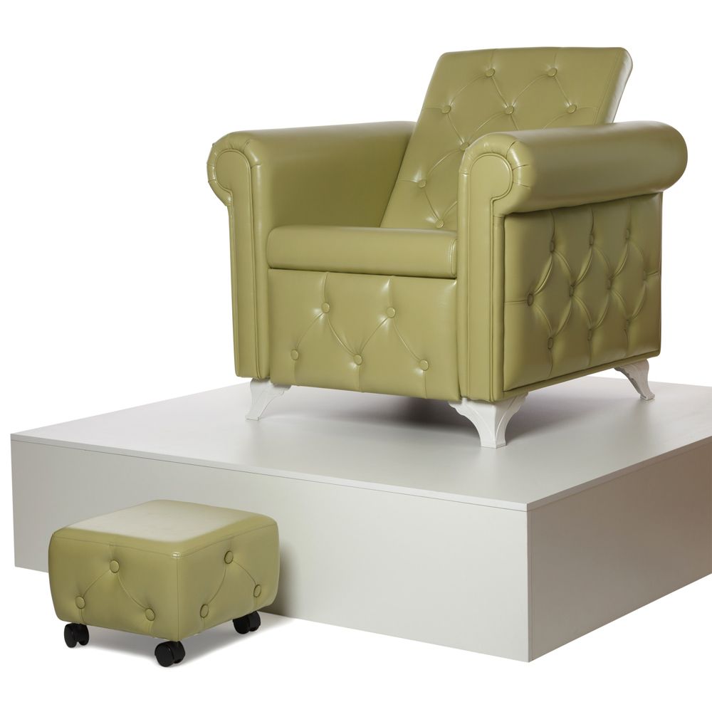 Удобный пуф для мастера маникюра на колесах с декоративными пуговицами, которые украшают внешнюю часть пуфа. Габариты: 38(Ш) x 28(В) x 38(Г)