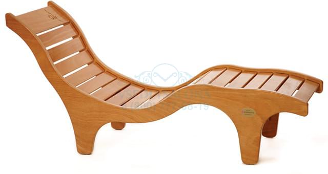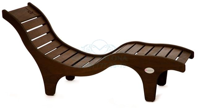 Эргономичный шезлонг для релаксации из дерева okume с мягким матрасом. Можно использовать в бассейне.