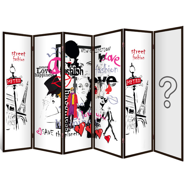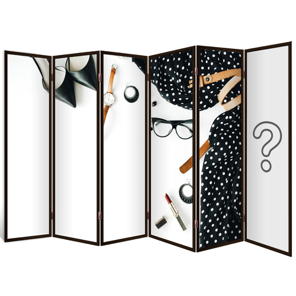 По вашему желанию можно выбрать разные или одинаковые изображения на обе стороны, увеличить количество створок, выбрать цвет багета и добавить колесики.