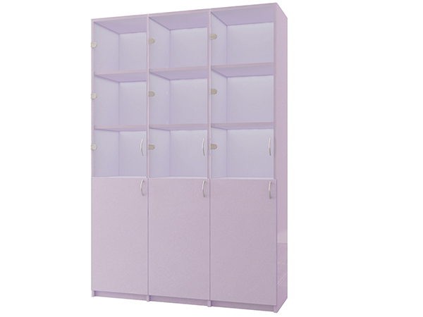 Шкаф №2 тройной изготовлен из ламинированного ДСП со стеклянными дверцами.