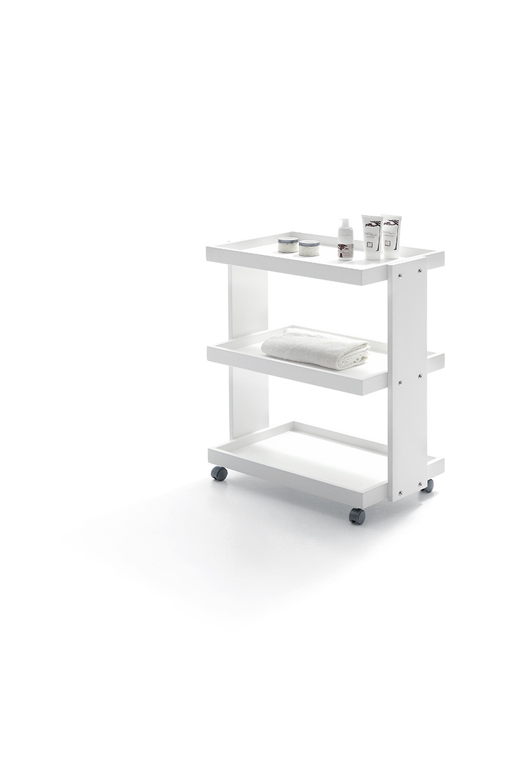 Спа-тележка «Oboro» выполнена из натурального дерева – березы. Модель имеет три вместительных полки, на которых можно расположить все необходимое для СПА-процедур. Все полки выполнены в форме поддона, что гарантирует сохранность размещенных на них предметов.