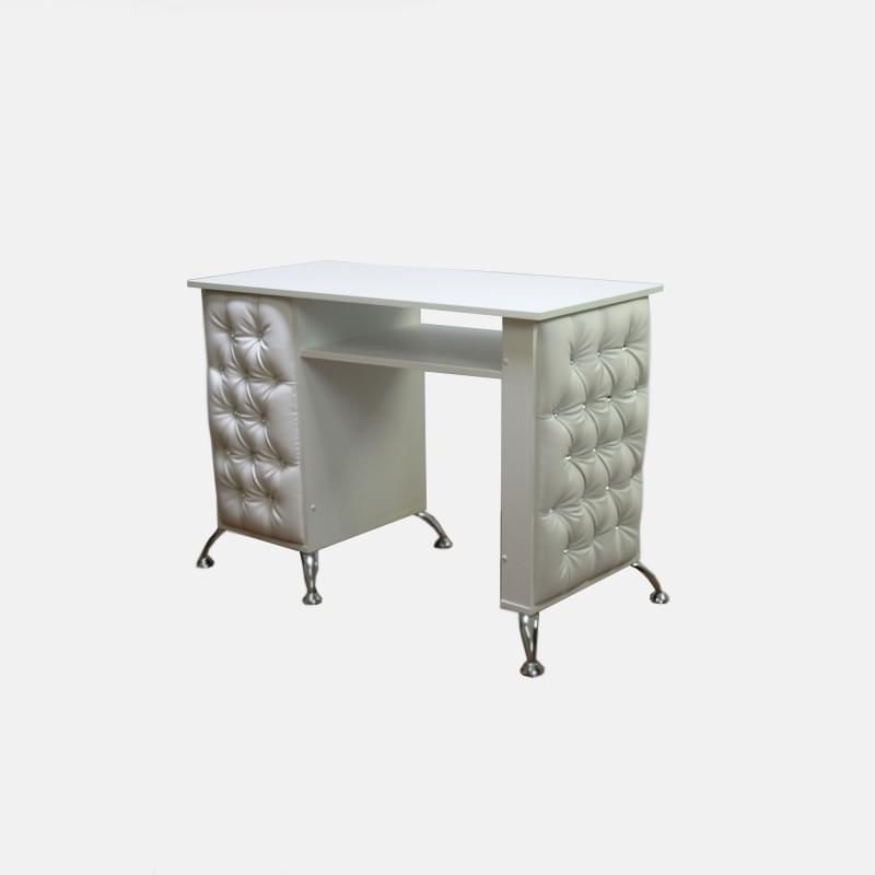 Оригинальный дизайн с каретной стяжкой станет настоящим украшением современного маникюрного салона. А учитывая, что цвета каретной стяжки и ДСП можно выбрать индивидуально, вы получаете по-настоящему универсальное решение. Модель доступна в разных размерах, можно заказать нужные вам габариты.
