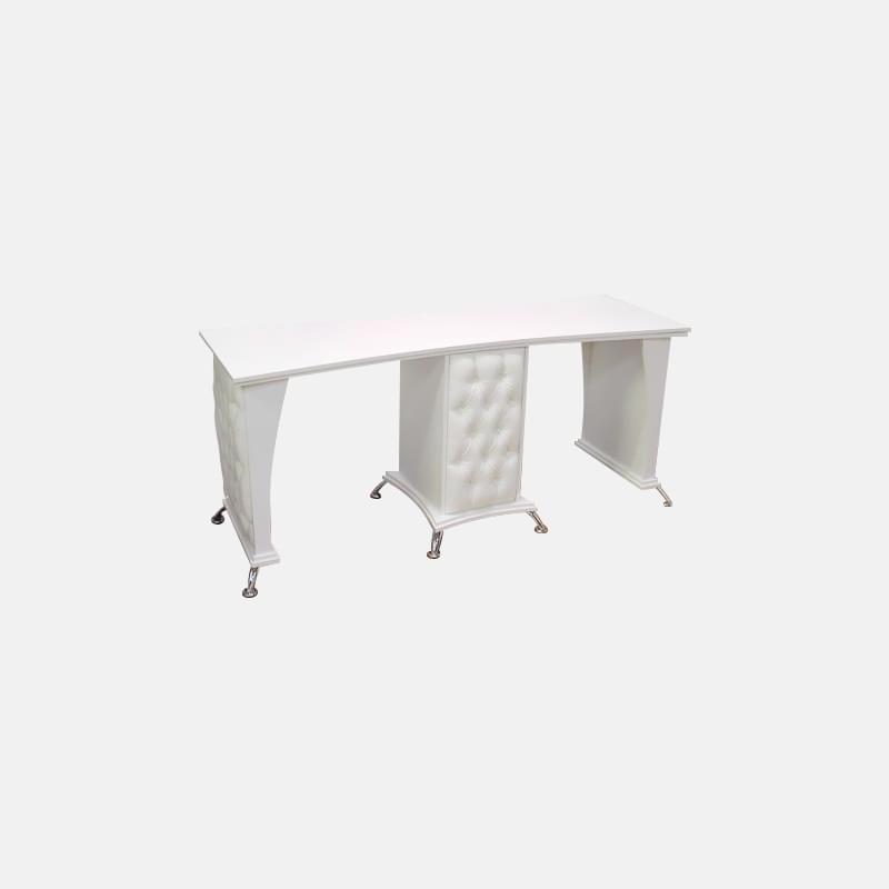 Если вы ищете двухместный маникюрный столик для работы, предлагаем рассмотреть модель «Орсола». Изящный внешний вид, элегантные формы, дополненные каретной стяжкой – все это вы получаете здесь. Плюс действительно удобное рабочее место одновременно для двух мастеров.