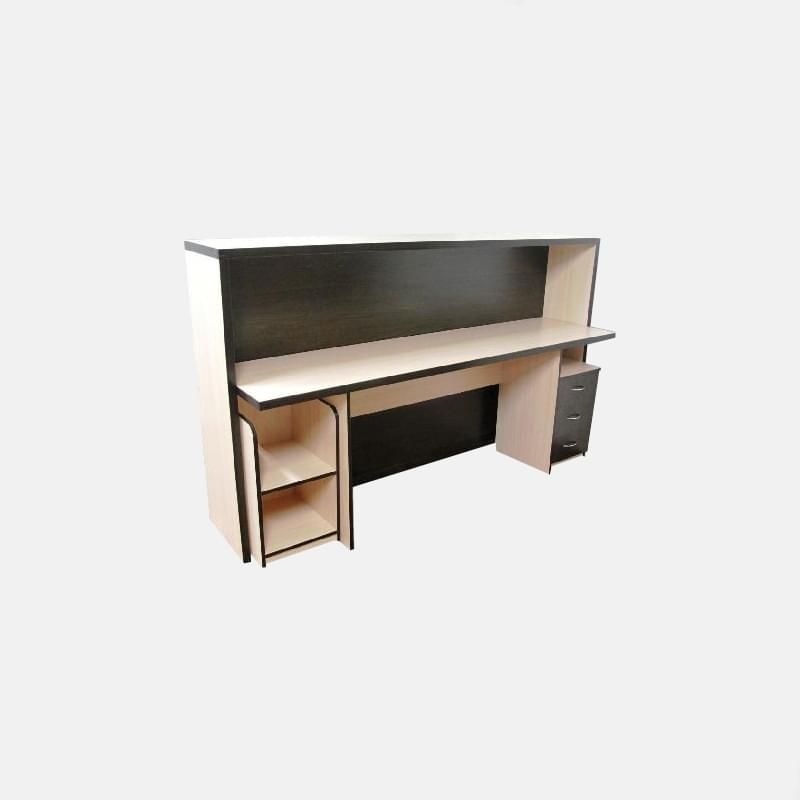 За стойкой достаточно места для хранения документов, прайсов, поэтому админ сможет легко вести запись клиентов, консультировать и следить за работой всего салона. Главный плюс – это множество полок и ящиков сзади.