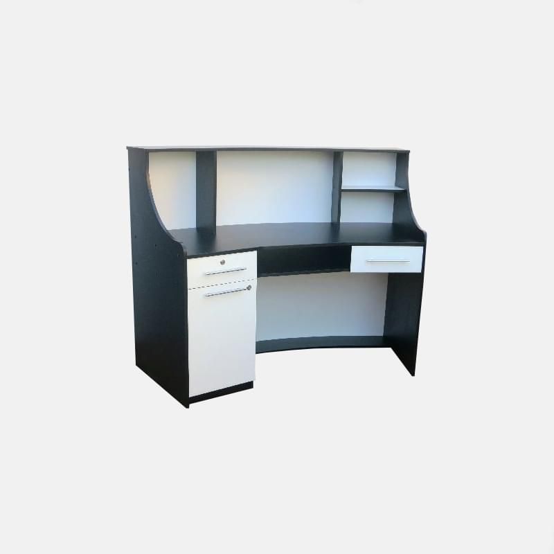 Стойка администратора Blur – пример того, что мебель в салоне красоты может быть не только красивой, стильной и необычной, но лаконичной, функциональной и долговечной. Так как данная ресепшен полностью выполнена из ЛДСП в светло-голубых цветах спереди, и темно-коричневом сзади. Плюс – за стойкой масса места для работы админа в комфорте, несколько ящиков и полок для хранения документации, прайса.