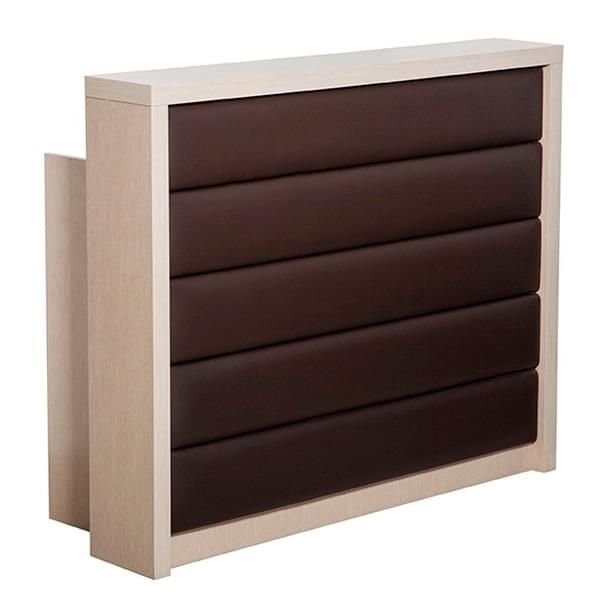 Администраторская стойка «Соната» сразу же привлекает к себе внимание. Каретная стяжка с мягкой текстурой выглядит современно и стильно, придает вашему заведению статуса и изысканности. Дополнительный эффект достигается за счет использования элегантных резных ножек, выступающих в роли некоего акцентного элемента. Со стороны администратора практически всю площадь занимают полочки и дверки, где можно разместить все для работы и личные вещи, если надобность в этом есть. Цвета отделки можно выбрать практически любые, что позволяет реализовать самые креативные идеи и придать вашей парикмахерской или салону красоты больше индивидуальности.