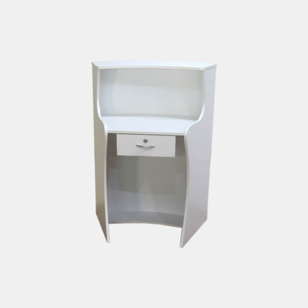 Главная особенность маникюрного стола Time – его угловая форма. За счет этого столик занимает относительно немного места и является более практичным, чем аналоги. В мастера в распоряжении будет большая столешница, две вместительные тумбы и дополнительный выдвижной ящик.