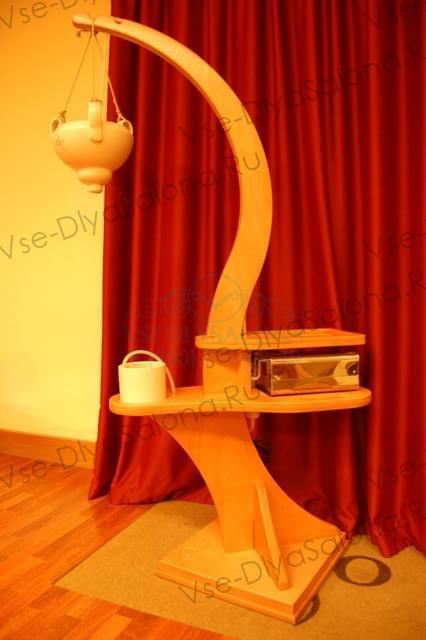 Стойка для масла из дерева окуме с керамической чашей. Предназначена для проведения аюрведических процедур. Рекомендуется приобретать с кушеткой AYURVEDA. Цвет: натуральное дерево, венге. Размер (см): 67х55х167h