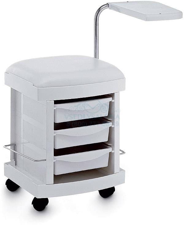 Стойка маникюрная MANI MASTER позволит мастерам проводить процедуру быстро, легко и с максимумом удобства, причем почти в любых условиях. Сделана стойка в белых оттенках, имеет три выдвижных ящика для хранения инструментов и регулируемую полку, которую можно настраивать под себя. Основной материал изготовления – пластик высокого качества, который легко очищается. А колесики внизу позволяют свободно перемещать стойку в нужную точку.