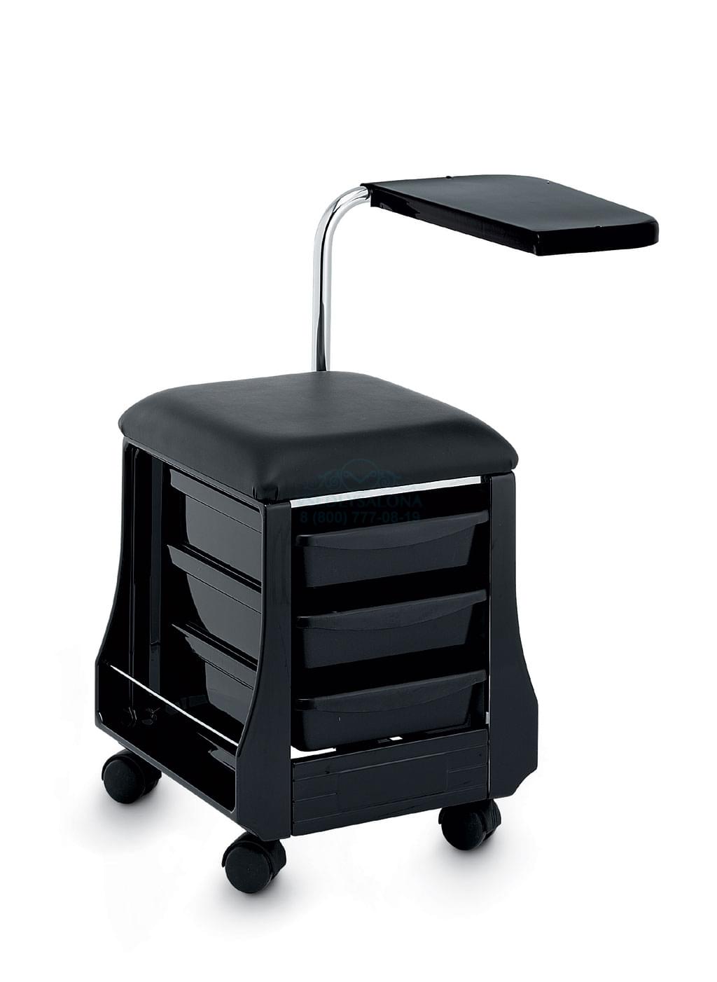 Рабочая зона – вращающаяся и редуцирующаяся по высоте полка, которая настраивается так, как удобно мастеру или клиенту. Передвигать стойку можно с помощью небольших колесиков, поэтому установить можно в любом уголке.