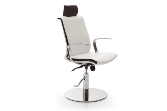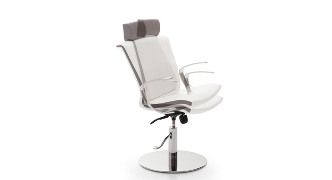 Элегантный и изысканный стул для макияжа «Make up» выполнен в современном дизайне. Данная модель отличается продуманностью каждой детали, универсальностью и максимальным комфортом для клиентов. Мягкое сиденье регулируется по высоте и вращается вокруг своей оси на 360 градусов. Также предусмотрена возможность регулировать по высоте подголовник и угол наклона спинки. Спинка имеет физиологическую форму, обеспечивающую комфорт.