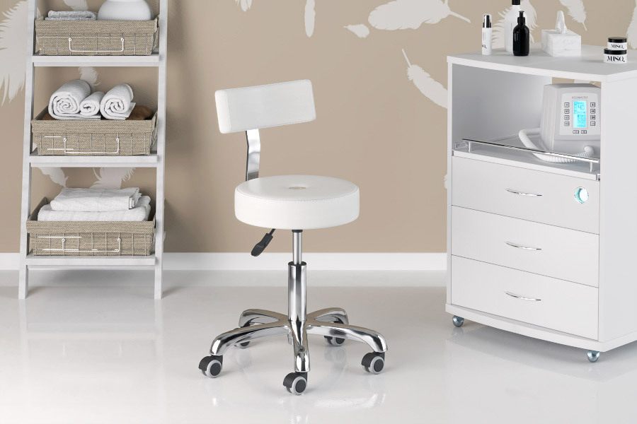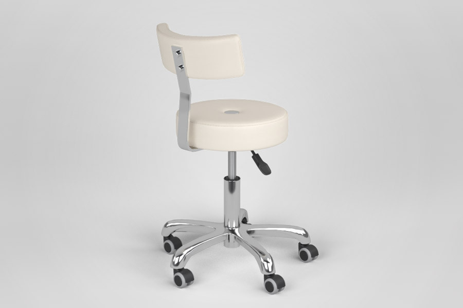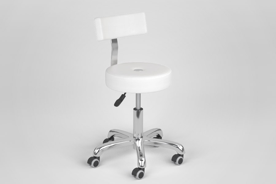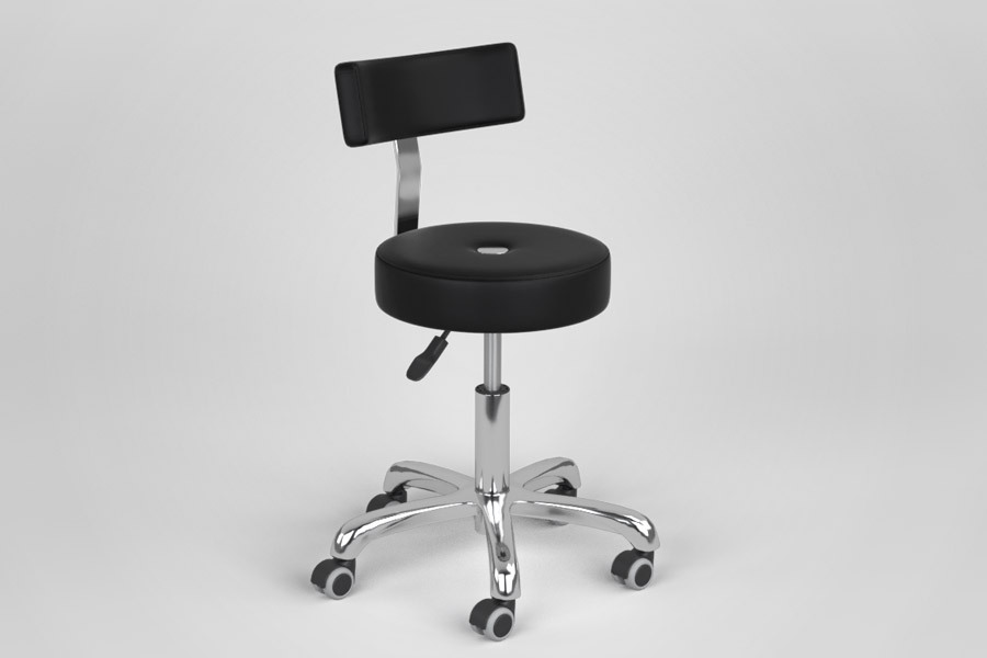 Хромированное пятилучье на бесшумных прорезиненных колесах, мягкое удобное сиденье, комфортная дугообразная спинка, пневматический подъемник, материал обивки – износостойкая экокожа.
