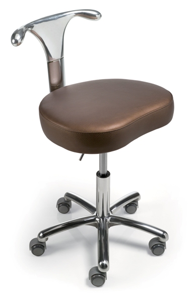 Стул оснащен спинкой/ручкой из полированного алюминия, алюминиевым основанием в форме пятилучья с колесами и газлифтом для регулировки высоты. Обивка - искусственная кожа высшего качества.