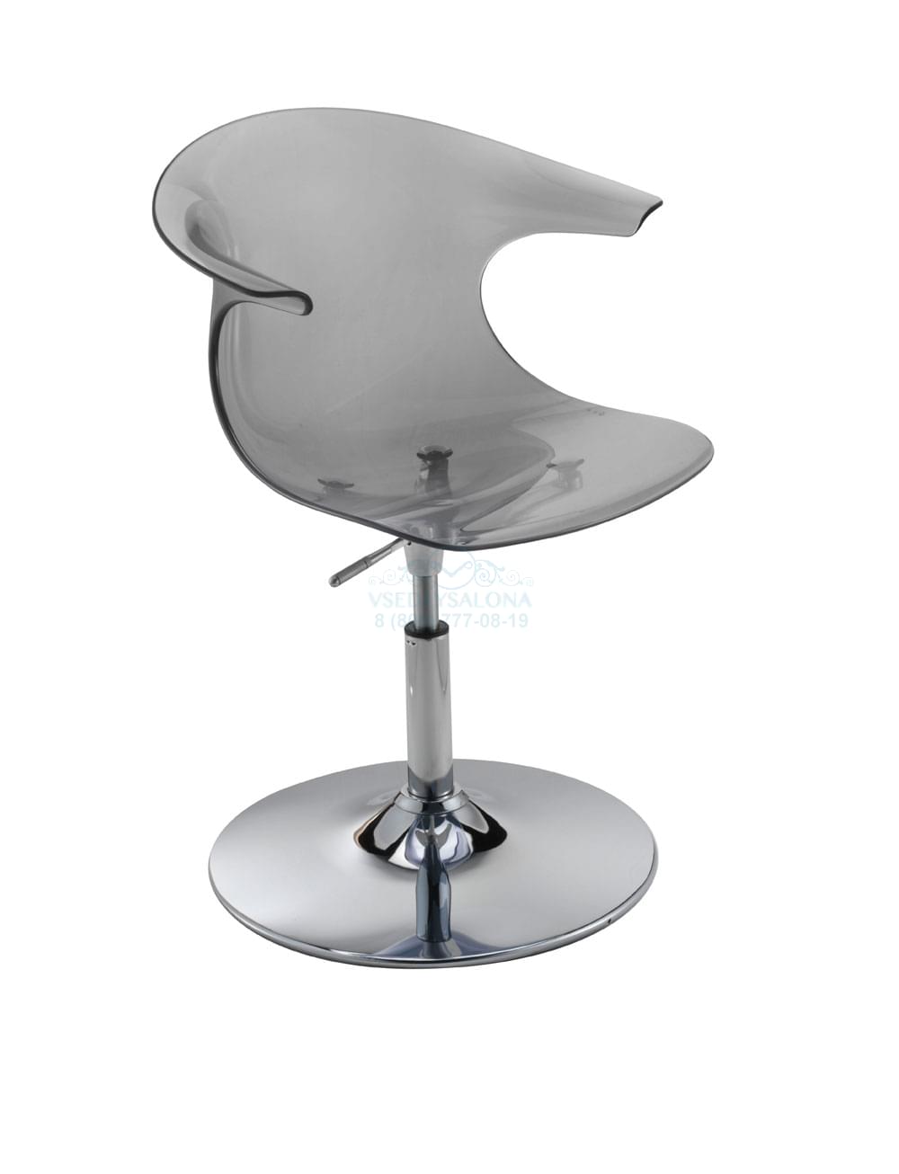 Стул из пластика на диске с пневматической регулировкой высоты. Цвет: белый, черный, прозрачно-серый. Возможен вариант с основанием - пятилучье на колесах. Hmin 43-Hmax56 Стул на гидравлике с дисковым основанием или пятилучьем с колесами: Hmin 50-Hmax64