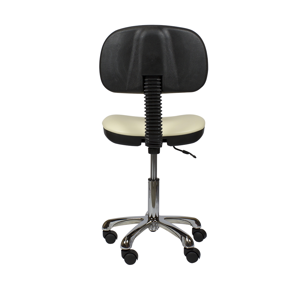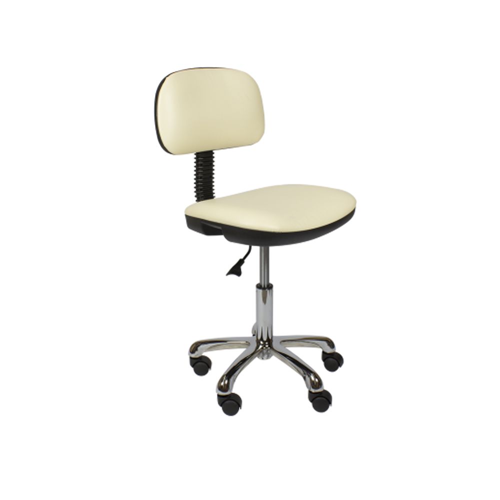 Мягкий стул мастера со спинкой и с пневматической регулировкой высоты на основании пятилучье, хром.
