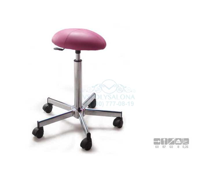 Стул для мастера без спинки, мягкие элементы стула обиты искусственной кожей, имеют овальную форму. Комплектуется металлическим пятилучьем на колесах. Пневматическая регулировка высоты. Размер (ДхШхВ):50х60х87