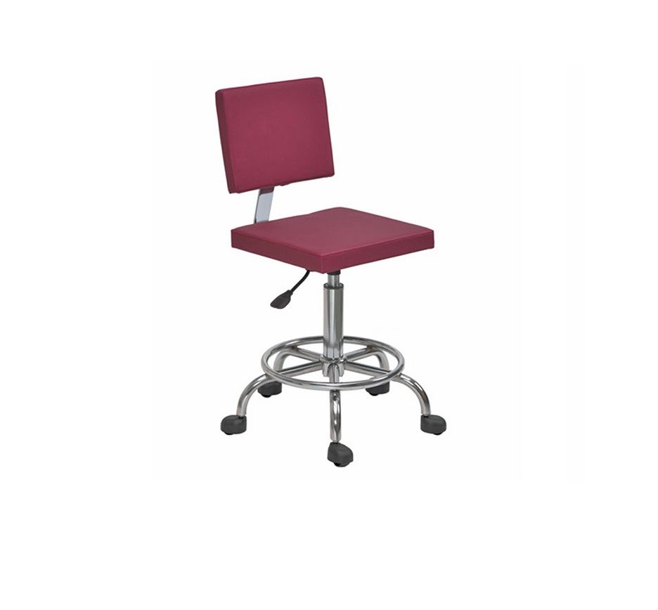 Стул с высокой пневматической регулировкой высоты на хромированном пятилучье с опорой под ноги на колесах. Варианты: механизм регулировки высокий или низкий. Цвет: белый, черный, синий, другие цвета под заказ. Размер: (ШхД) 450х550