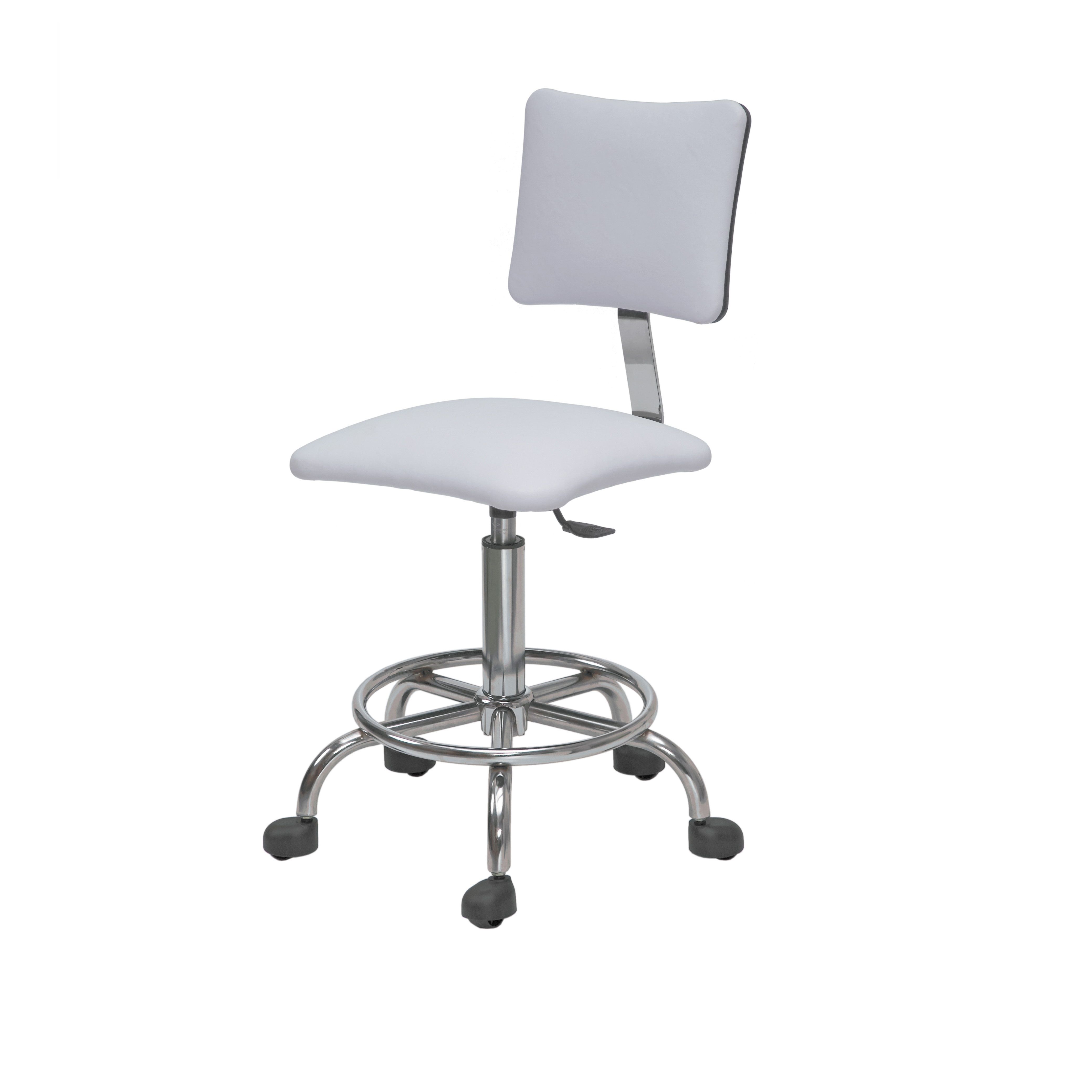 Стул для мастера С-7 со спинкой. Комплектуется пневматическим подъемником и хромированным пятилучьем на колесах с опорой для ног. Цвета в наличии на складе: синий, черный, слоновая кость, белый. Другие цвета под заказ. Размер (ДхШ): 40х50