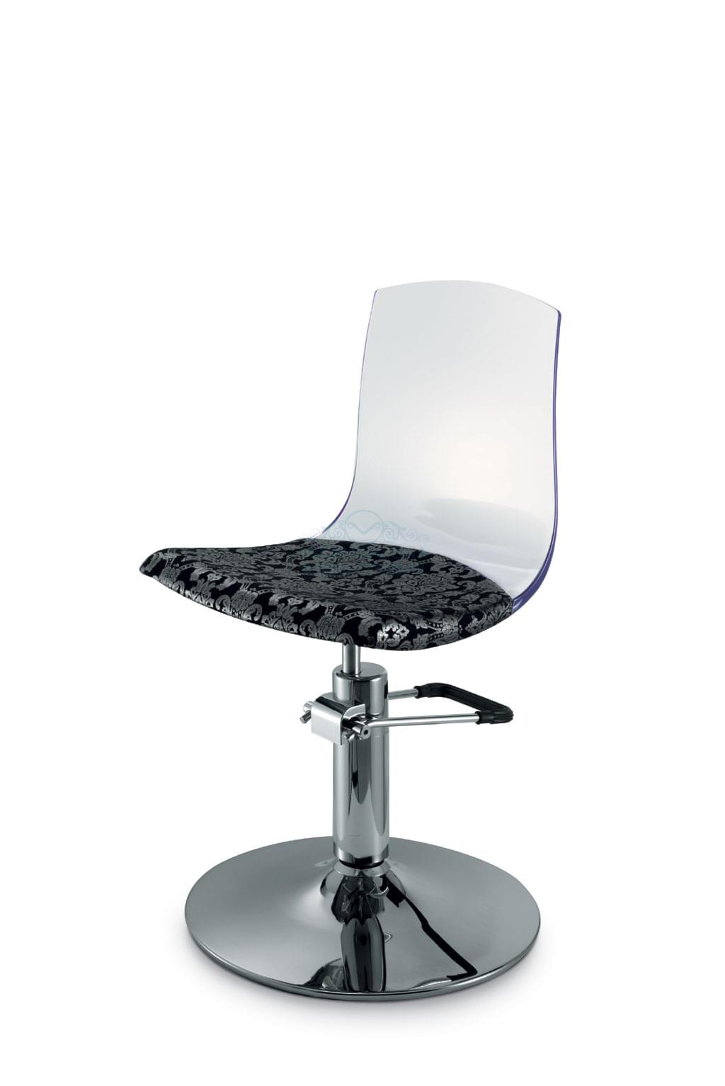 Стул на диске, выполнен из прочного прозрачного пластика с чехлом из ткани. Регулировка высоты при помощи пневматики. Размер: Hmin 48-Hmax64
