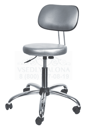 Стул мастера Т-2 (со спинкой, пневматика низкая хром, пятилучье хром на колесах). Размеры: В52-65 см