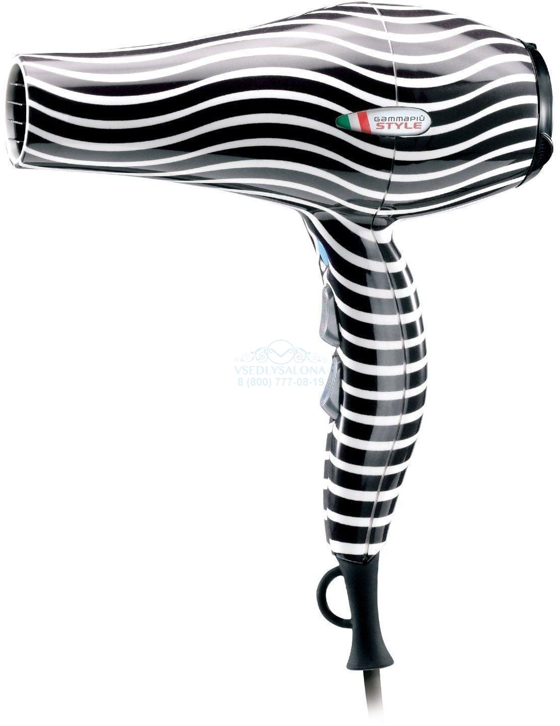 Фен Style 08 оснащен профессиональным мотором мощностью 2200 Вт. Отличительные особенности: эксклюзивная система нанесения рисунка, повышающая устойчивость к царапинам, яркий дизайн - черно-белая полоска "зебра", суперлегкий - 500 г, 3 режима нагрева, 2 режима скорости воздушного потока, кнопка моментального охлаждения, супермягкий сетевой провод (длина 3 метра), съемный металлический фильтр на воздухозаборнике, кольцо для подвешивания. Комплектация: 2 насадки (сопла) концентрации воздуха: для быстрой сушки и точной укладки (6 мм и 8 мм).