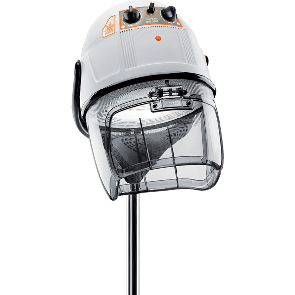 Сушуар для волос напольный односкоростной, 2-х скоростной или 4-х скоростной, предназначен для сушки волос потоком нагретого до необходимой температуры воздуха, комплектуется таймером, терморегулятором и переключателем скоростей.. У сушуара имеется прозрачный диффузор. Цвет пятилучья – черный. Цвет кронштейна - белый, черный, серебро. Технические характеристики: 1000Вт, 220-240В, 50Гц. Крепление кронштейна по высоте Н210.