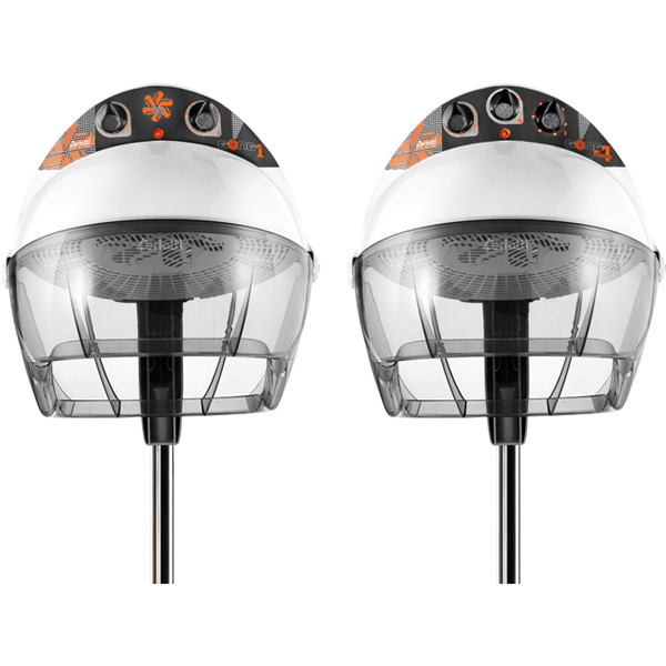 Сушуар для волос напольный односкоростной, 2-х скоростной или 4-х скоростной, предназначен для сушки волос потоком нагретого до необходимой температуры воздуха, комплектуется таймером, терморегулятором и переключателем скоростей. У сушуара имеется прозрачный диффузор. Цвет пятилучья – черный. Цвет кронштейна - белый. Технические характеристики: 1000Вт, 220-240В, 50Гц. Крепление кронштейна по высоте Н210.