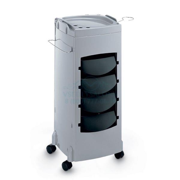 Тележка парикмахерская выполнена из пластика, на колесиках, с выдвижными ящиками. Размер (ДхШхВ): 38х38х92