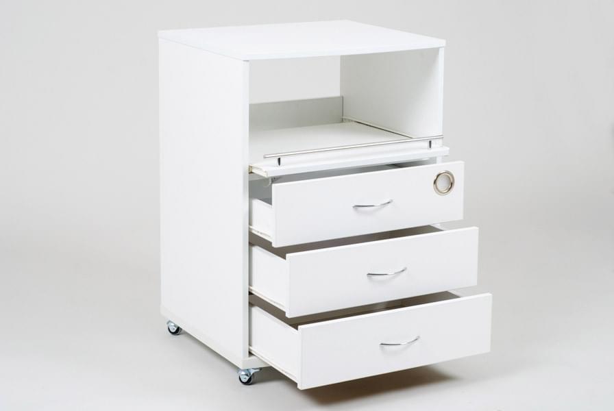 Тумба Италика является универсальной моделью, которая подойдет для установки в салоны красоты, стоматологии, центры ногтевого сервиса. Она изготовлена из качественного и практичного ЛДСП материала, который устойчив к влажности, перепадам температуры, химическим и механическим воздействиям. Современный дизайн, выполненный в белом цвете, позволяет ей гармонировать с любым интерьером.