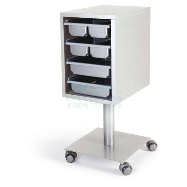 Тележка парикмахерская из ламината с выдвижными пластиковыми ящиками. Основание - металлический квадрат на колесах. Размер: 30х40х79