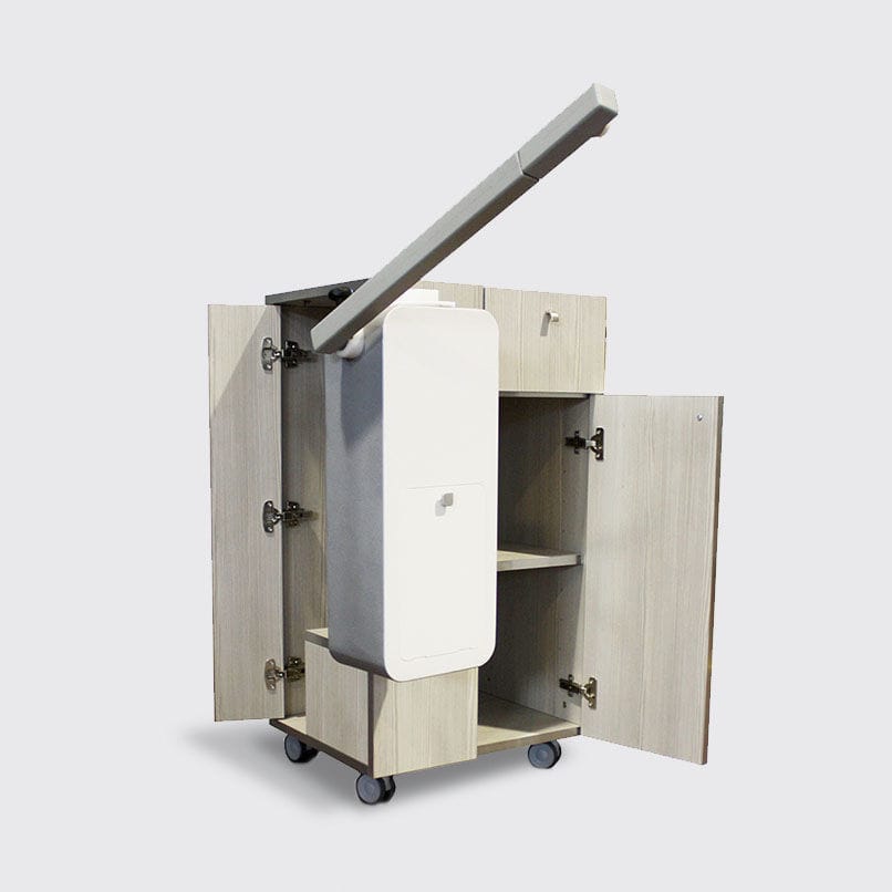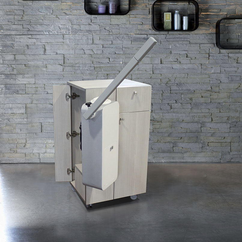 Тележка t-Vapo оснащена интегрированным пароходом, что позволяет осуществлять еще больше профессиональных манипуляций по уходу за лицом и телом. Сегодня подобные решения особенно востребованы среди профессионалов в индустрии красоты. Они позволяют выполнять процедуры ароматерапии, применять различные травы, осуществлять пропаривание.
