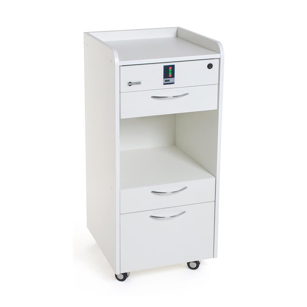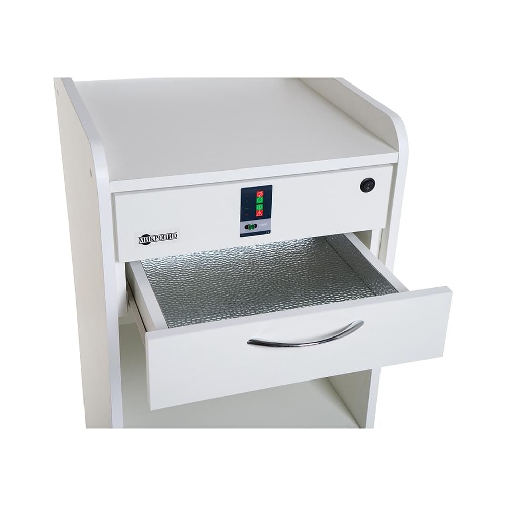 Тумба Элли SR со стерилизатором – изящное, конкретное изделие, которое широко используется в профессиональной среде, при том, что увеличивает продажи и помогает мастерам хранить рабочие вещества.