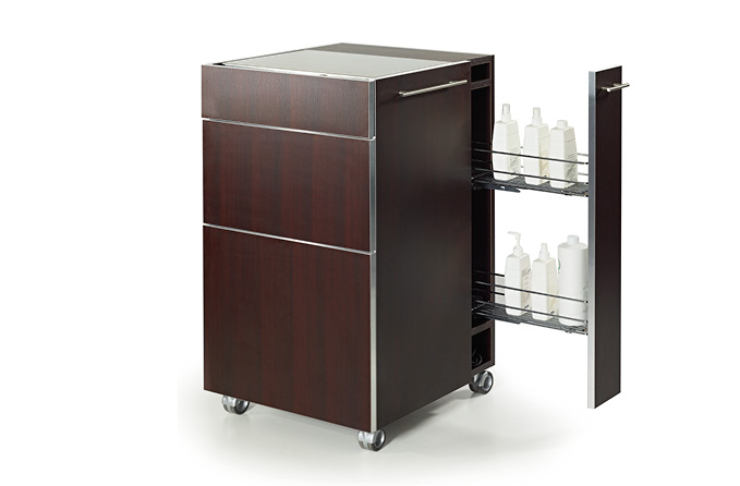 Многофункциональная тумба «T-VALE» используется для хранения различных аксессуаров, инструментов и средств. Благодаря минималистичному дизайну она впишется в любой интерьер. При производстве используется натуральное дерево и хромированная сталь.