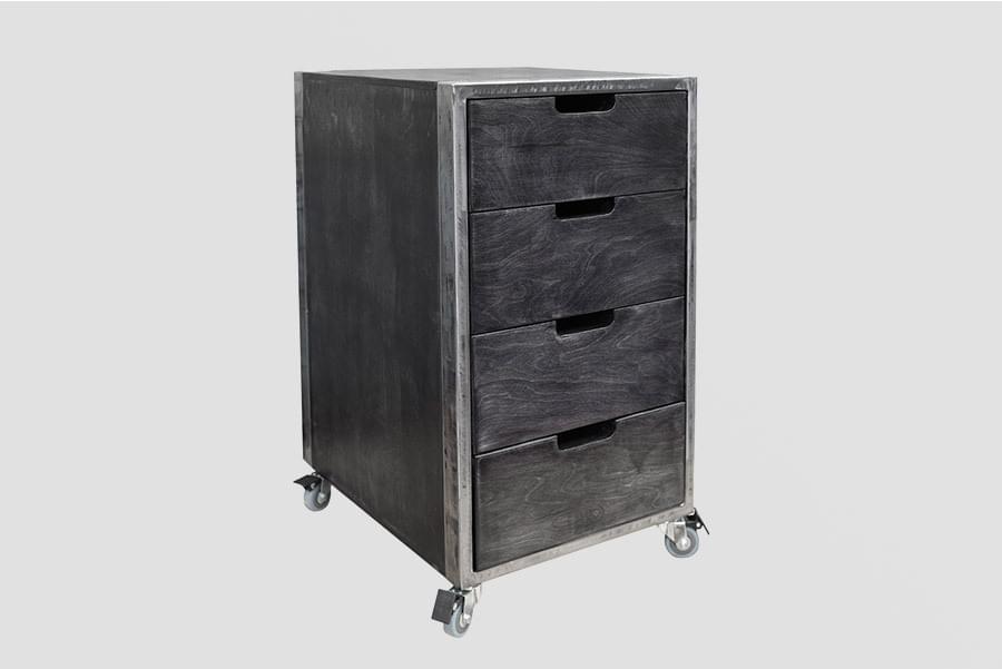 Благодаря эффекту искусственного старения, Тумба для барбершопа North идеально подойдет к лофт-пространству. Корпус выполнен из фанеры со стальным обрамлением. Металл покрыт двухкомпонентным лаком, корпус и фасады ящиков тонированы по собственной технологии. Ручки сделаны в виде пазов на фасадах ящиков. Ящики полностью выдвигаются, глубина ящика 400 мм. Колеса прорезиненные, с тормозом.