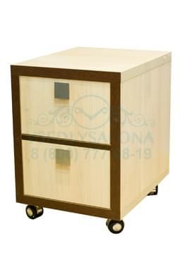 Тумба напольная подкатная с двумя выдвижными ящиками. Идеально использовать с маникюрным столом "Квадро". Цветовая гамма применяемых материалов может представлять собой любую комбинацию ЛДСП, представленных на сайте. Размеры, см : 38(Ш) x 54(В) x 50(Г)
